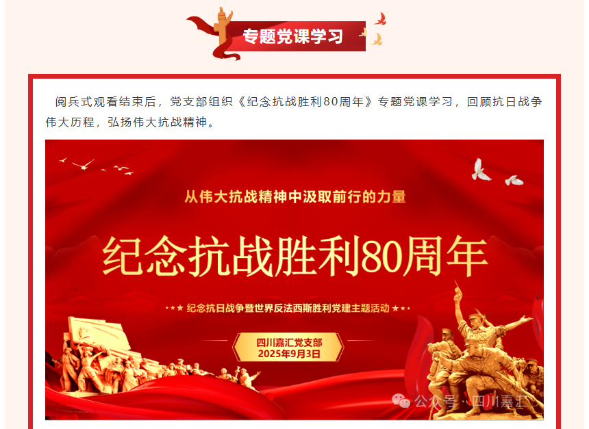 黨建||“銘記抗戰(zhàn)歷史 傳承紅色基因”四川嘉匯開(kāi)展抗戰(zhàn)勝利80周年紀(jì)念活動(dòng)