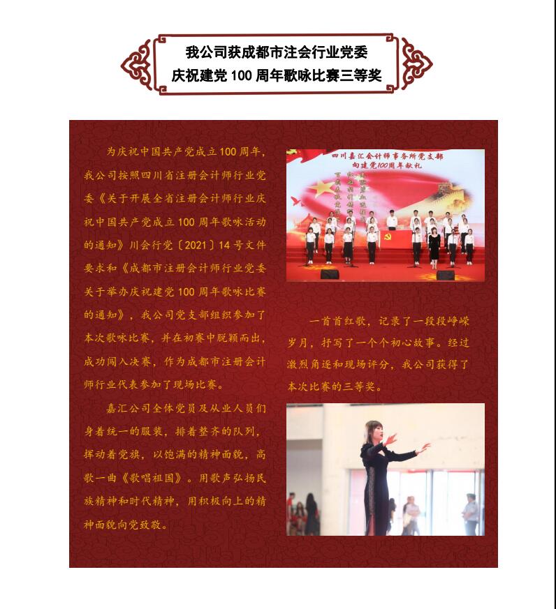 我公司黨支部獲成都市注會行業(yè)黨委慶祝建黨100周年歌詠比賽三等獎