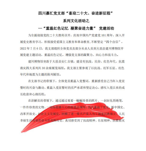 四川嘉匯黨支部“喜迎二十大、奮進(jìn)新征程” 系列文化活動之 --“重溫紅色記憶 凝聚奮進(jìn)力量” 黨建活動